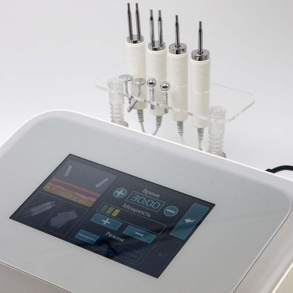 косметологическим аппаратом серии ПРО, который включает в себя функцию микротоковой терапии: